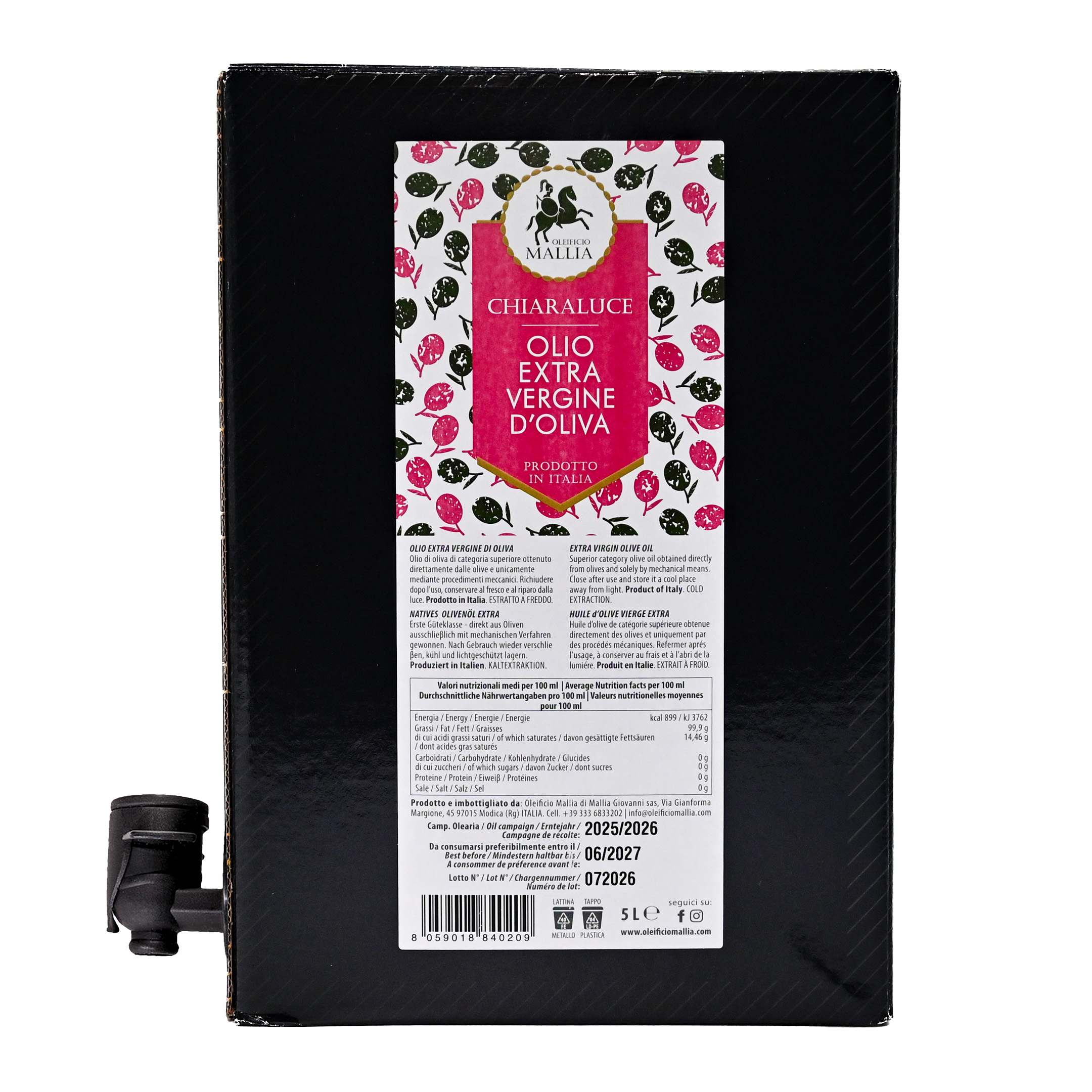 0liwa z oliwek Extra Virgin Olio Mallia Chiaraluce -5L Bag in Box z Niską Goryczką- Maślano – Śmietankowy Przepyszny Smak Świetna do Maczania Chlebka- Można Smażyć – Świeże Tłoczenie 2025/26