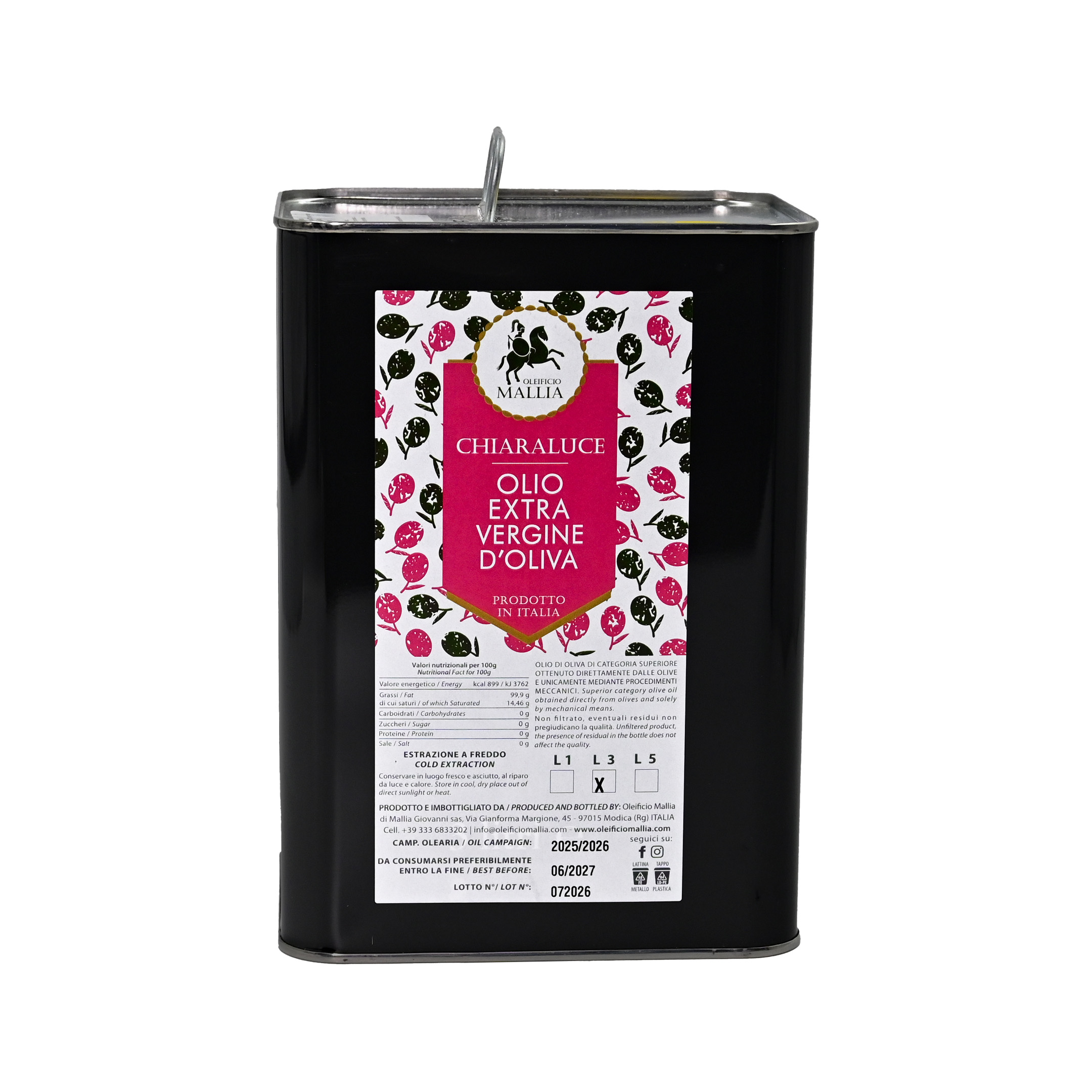 0liwa z oliwek Extra Virgin Olio Mallia Chiaraluce -3L Puszka z Niską Goryczką- Maślano – Śmietankowy Przepyszny Smak do Maczania Chlebka-Można smażyć- Świeże Tłoczenie 2025/26