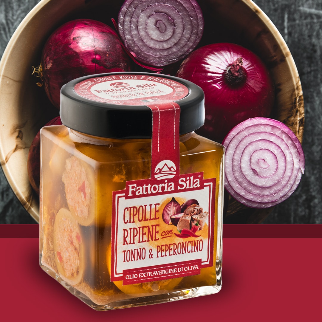 Cebulka nadziewana Tuńczykiem i Chilli w Oliwie Fattoria Sila – 280g Kuchnia Kalabryjska Bez Konserwantów