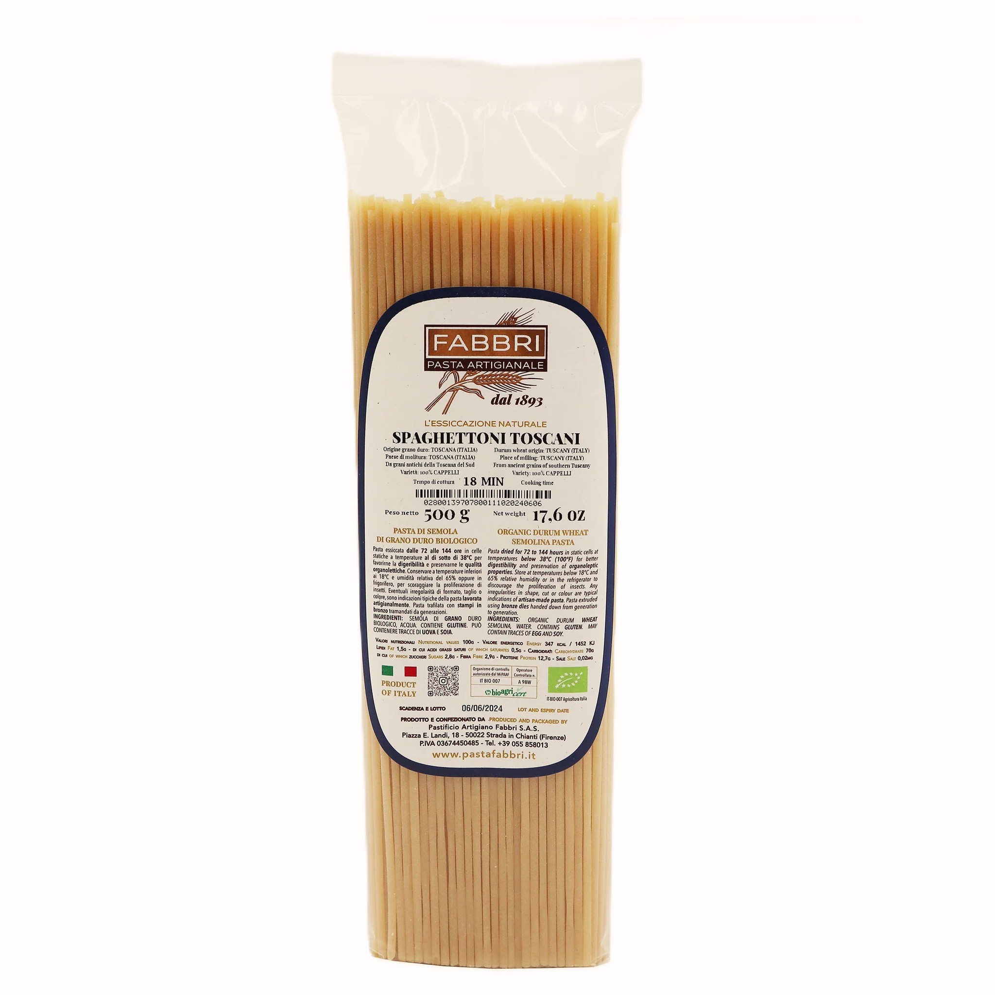 Od 5 pokoleń Firma Fabbri zwraca uwagę na cały łańcuch dostaw: od wyboru najlepszej pszenicy, po delikatne wytwarzanie makaronu i suszenie w naturalnych temperaturach. Wszystko to przy użyciu oryginalnych maszyn i matryc z brązu z lat 50-tych XX wieku.