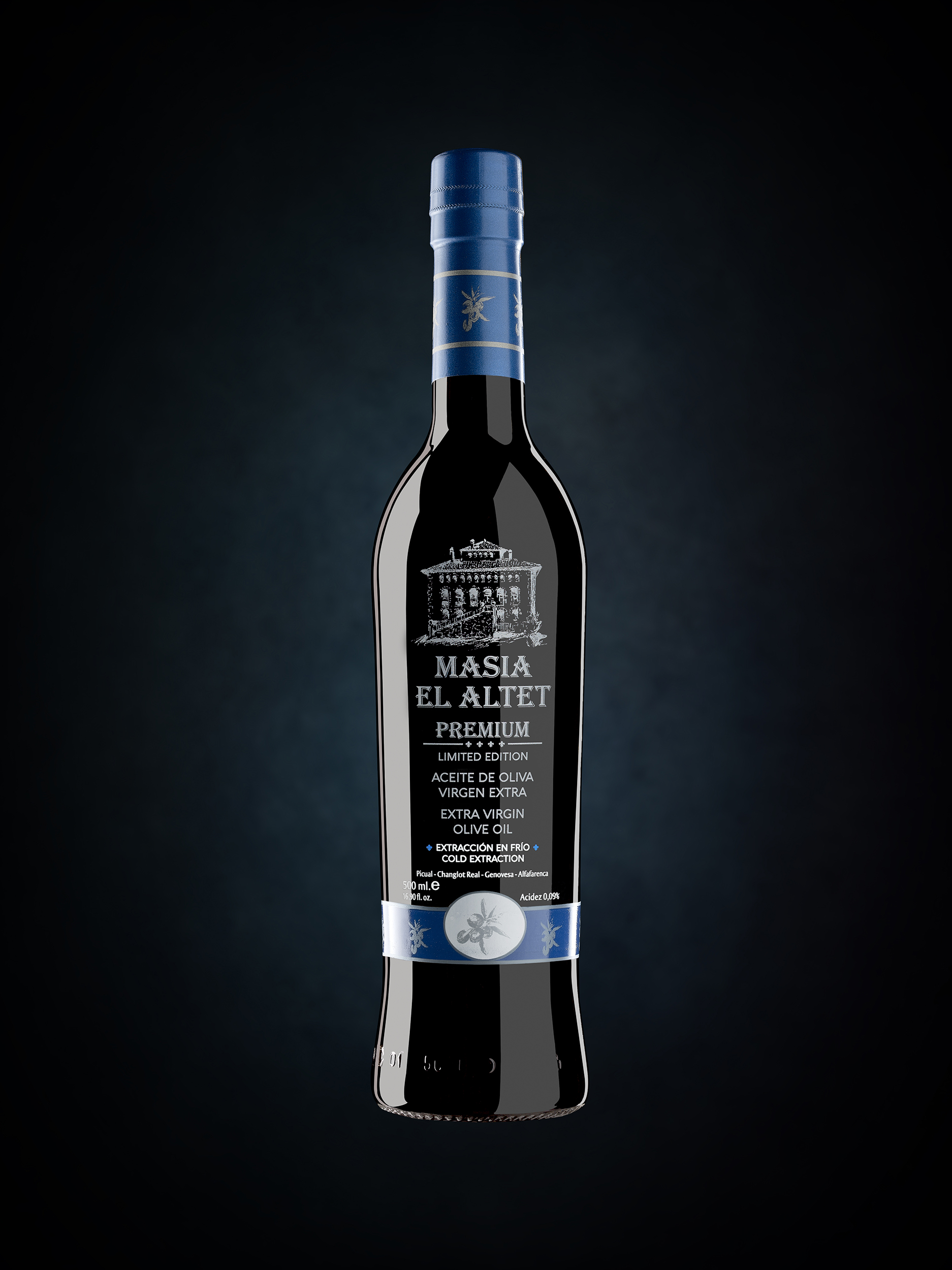 Oliwa z oliwek z pierwszego tłoczenia, która jest zrównoważona, elegancka, ziołowa i owocowa, i która wyraża tożsamość terroir, można wyczuć w niej też nuty trawiaste i cytrusowe. Posiadłość leży na terenie dwóch rezerwatów przyrody Dolina Polop, Alcoy.